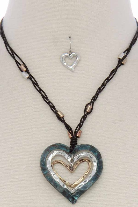 Beautiful Love Paved Shell Heart Pendant Necklace Set