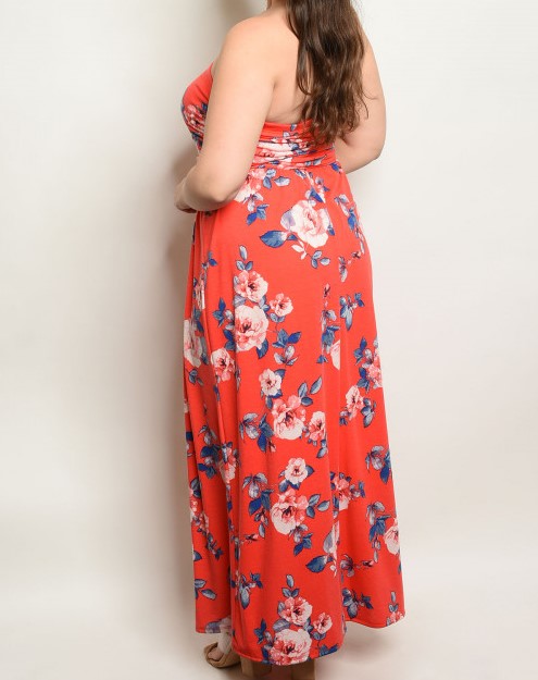 Burnt orange floral Maxi dress with ruched details on each side of the bodice