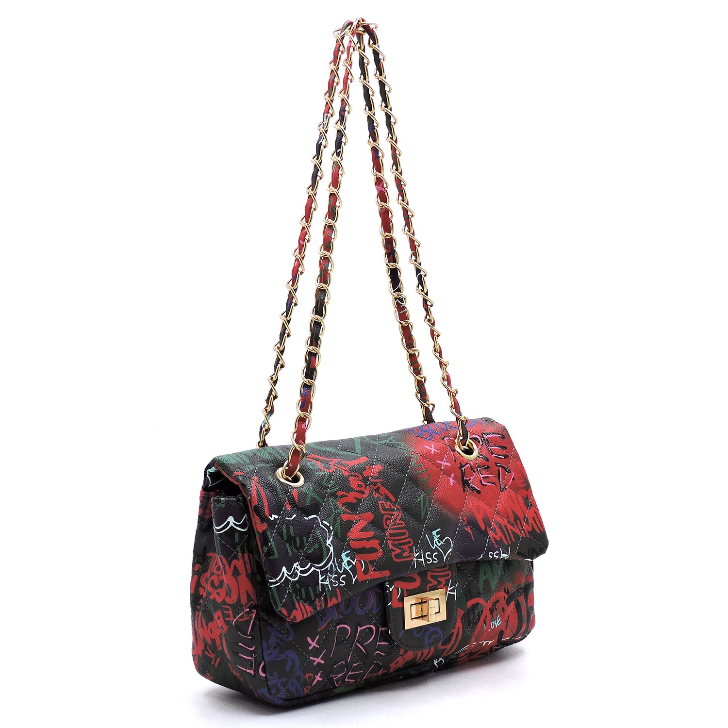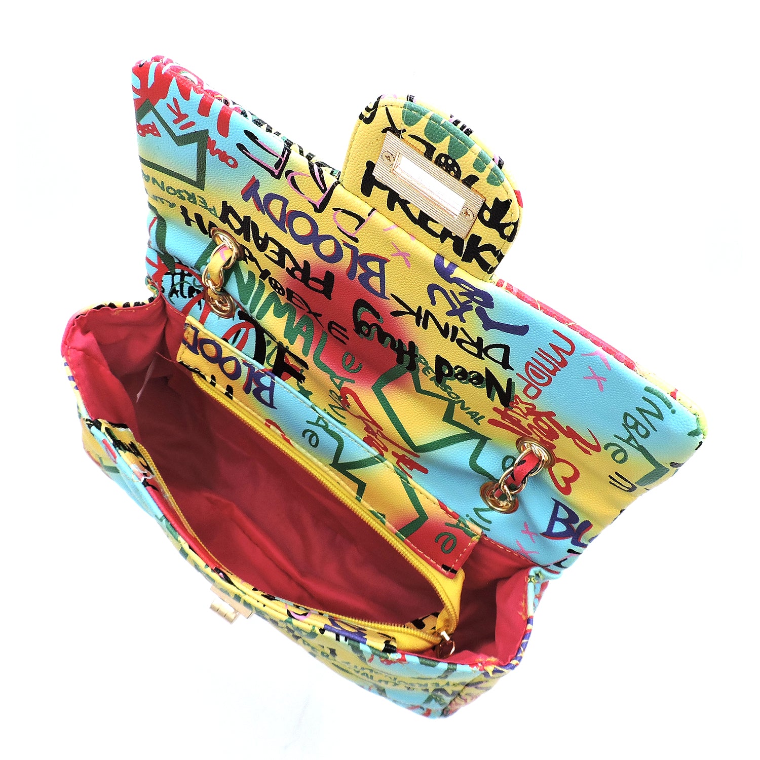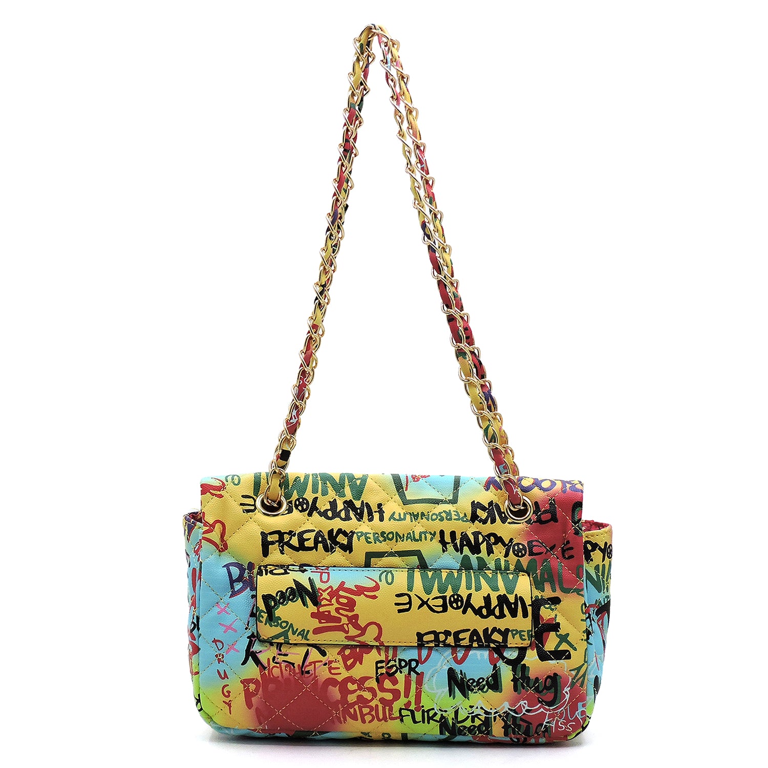 Clever Multi Graffiti Print Quilted Convertible Shoulder Bag
