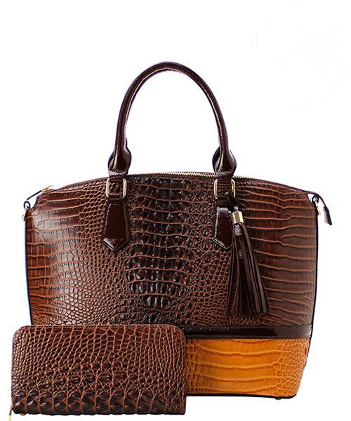Color blocked croc inspired Handbag and Wallet