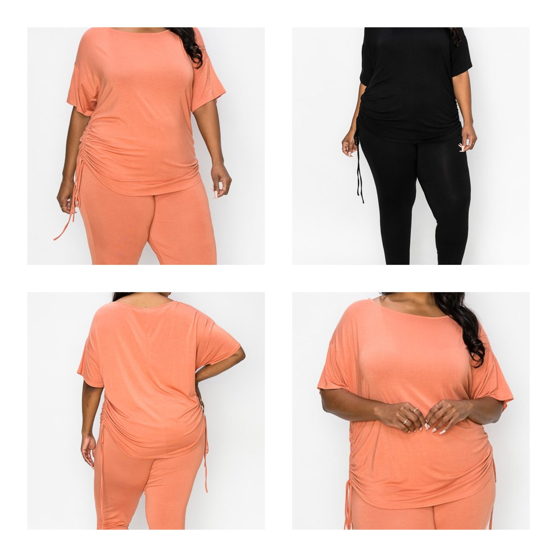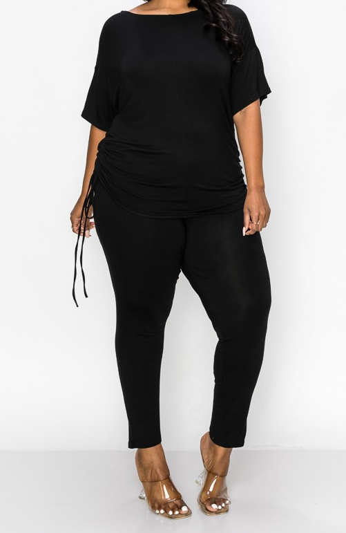 Adjustable spaghetti tie on the side short sleeves top and skinny pants