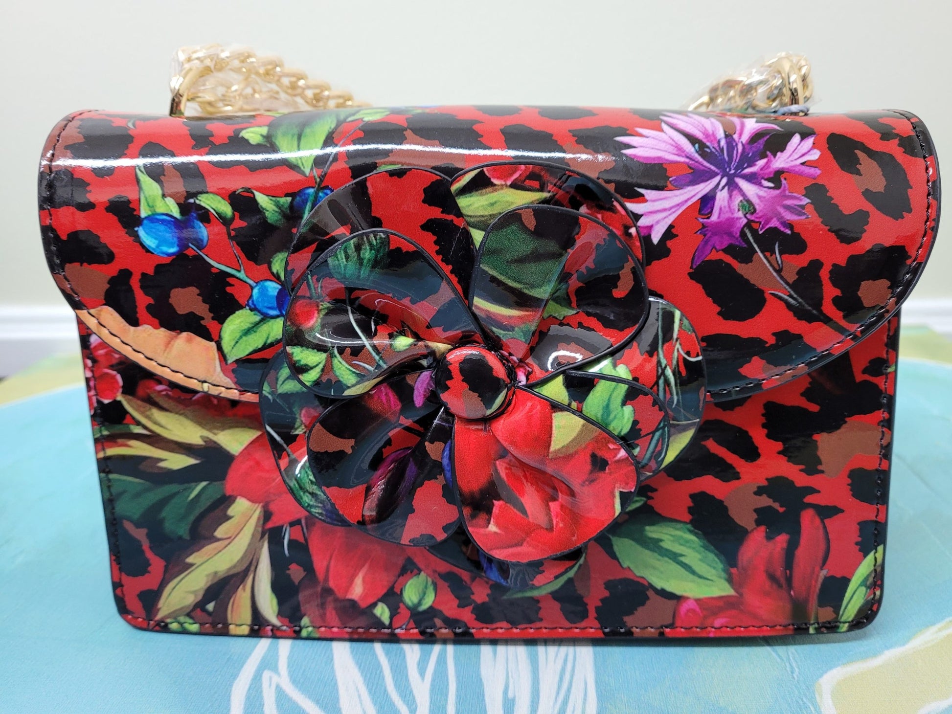 - Glossy Antique Flower Pattern 3-in-1 Handbag