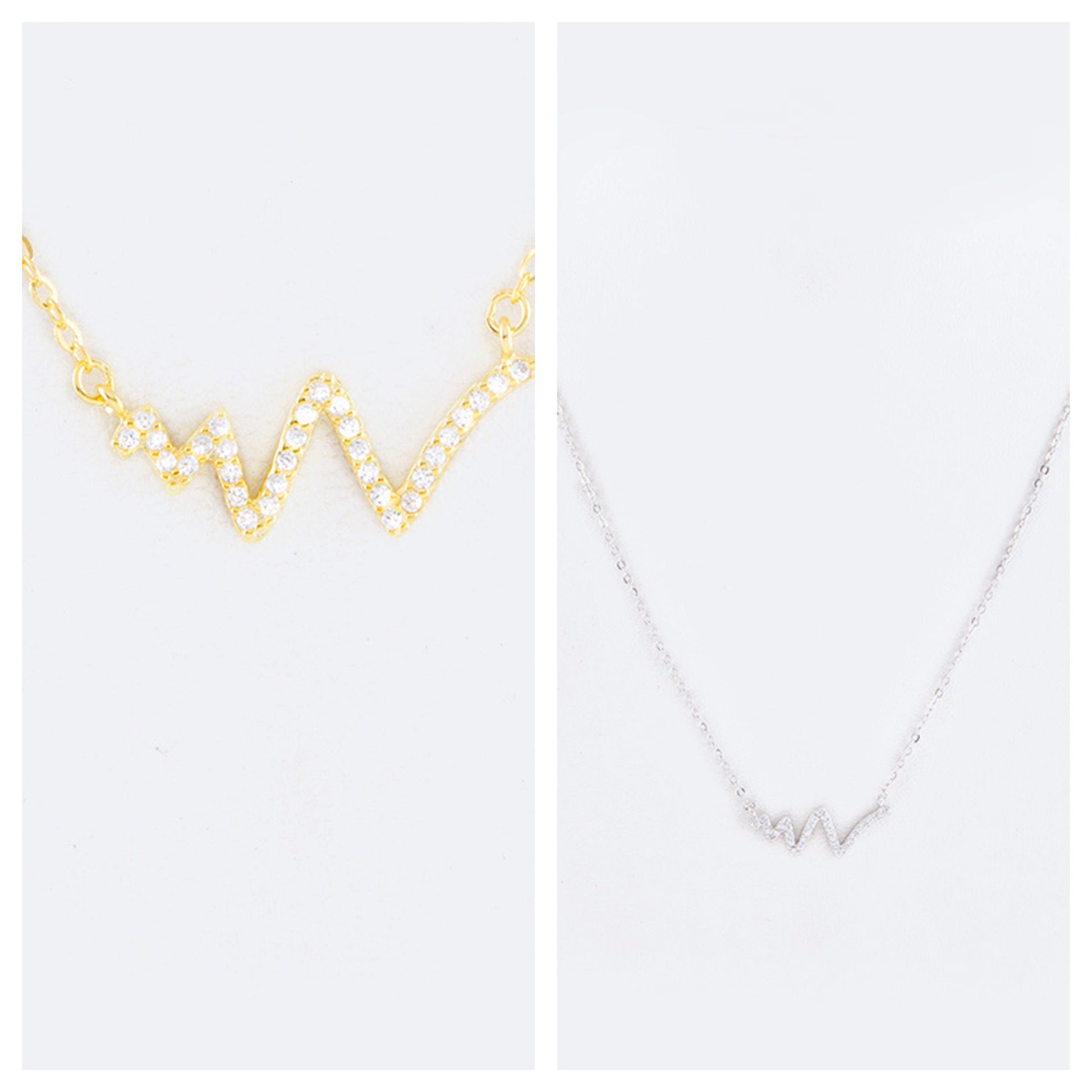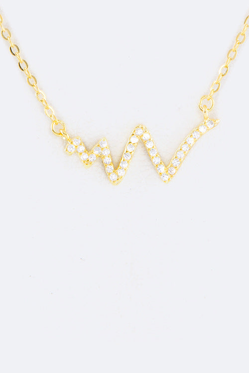 Beautiful Sterling Silver Cubic Zirconia Heart Beat Bar Necklace