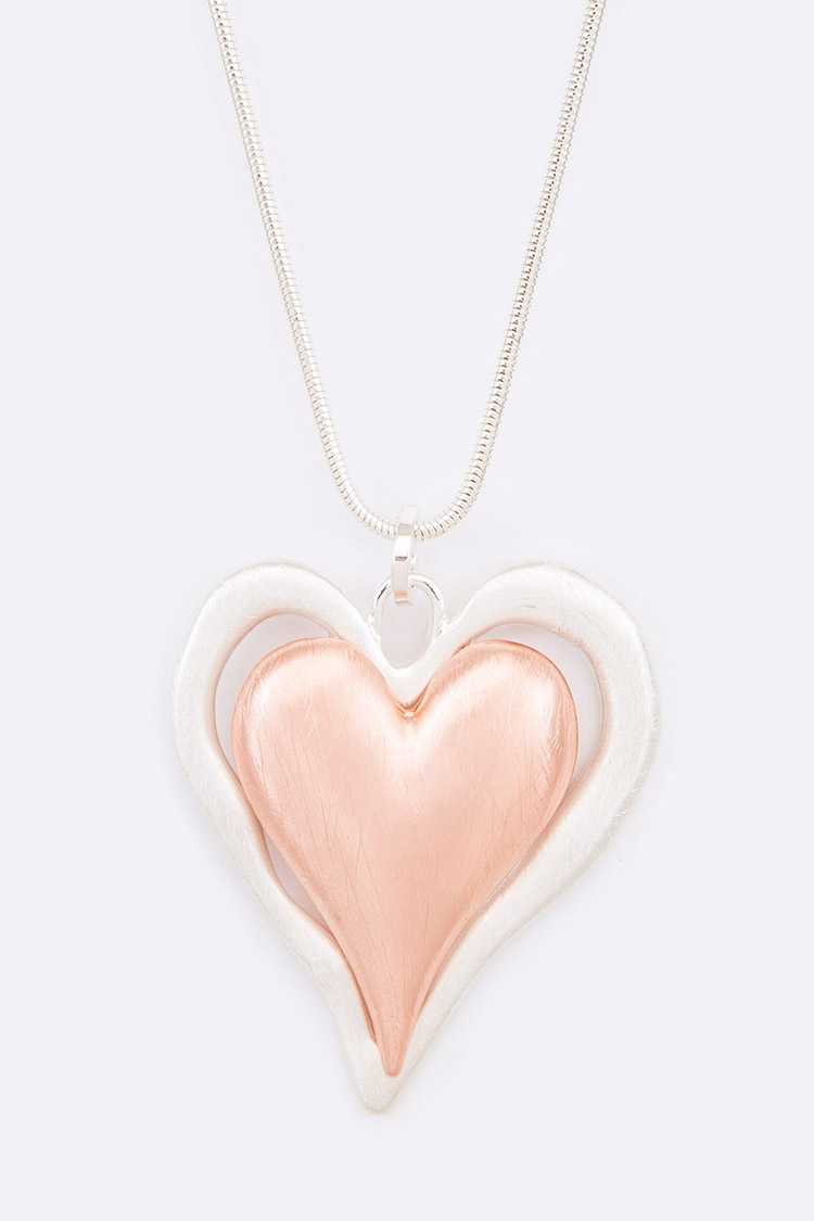 Stylish Puff Heart 2 Tone Pendant Necklace