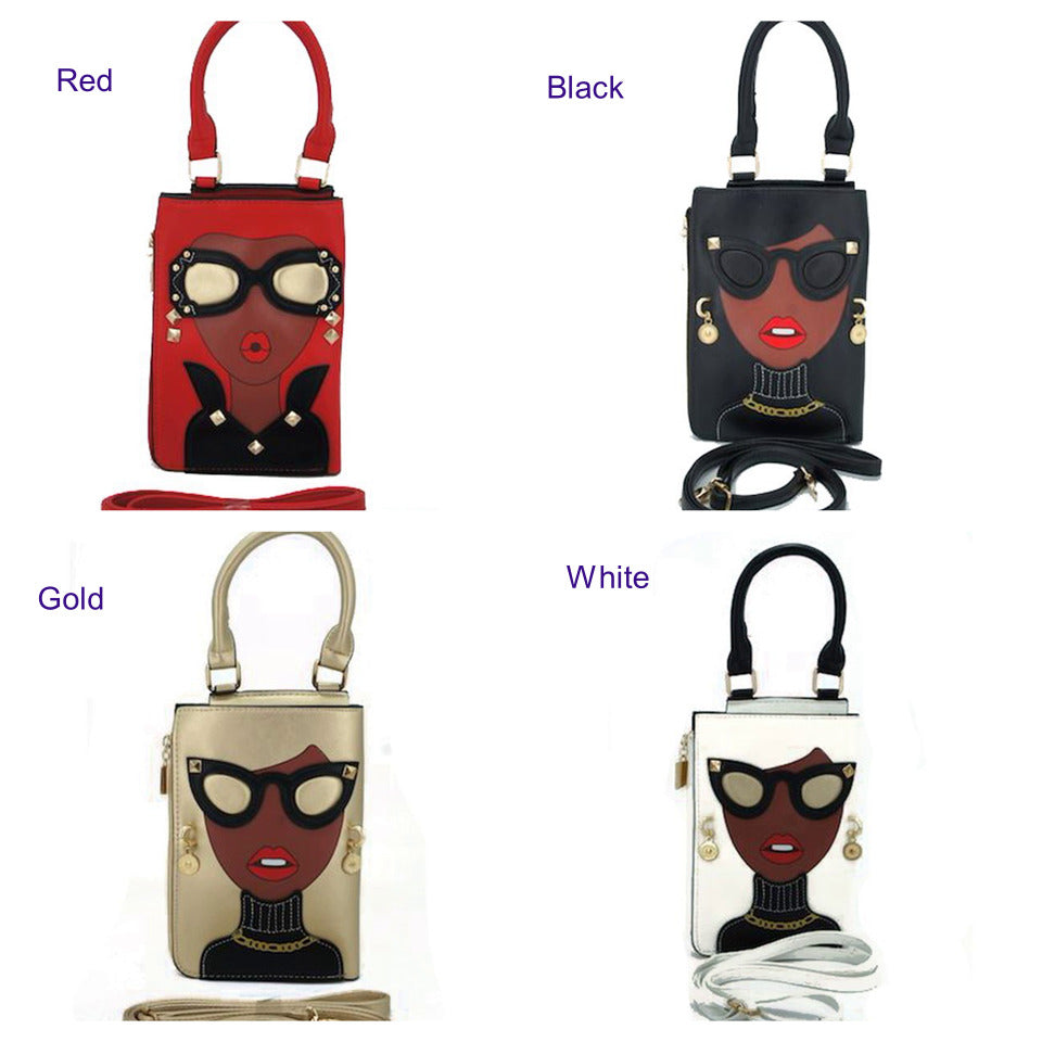 Woman with Earrings Hand Held Or Cross Body handbag with Detachable chain.