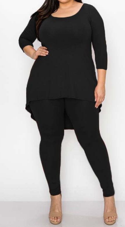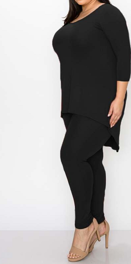 Two piece High- Low top and leggings set with 3/4 sleeves