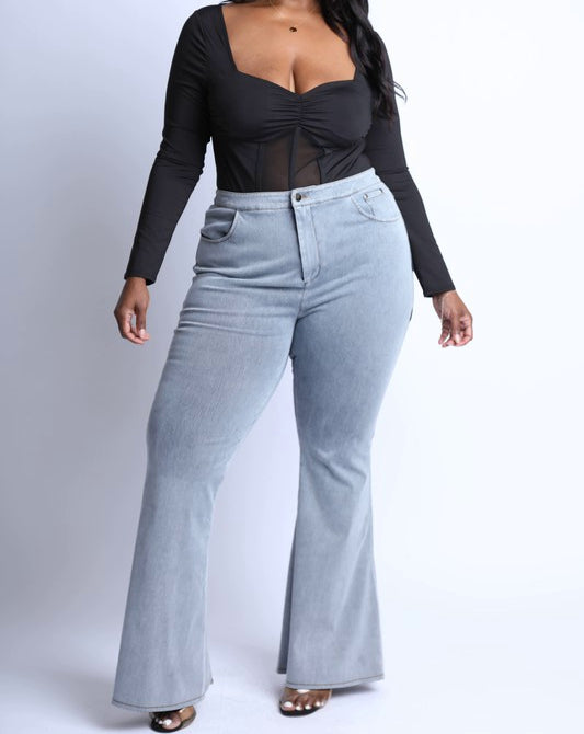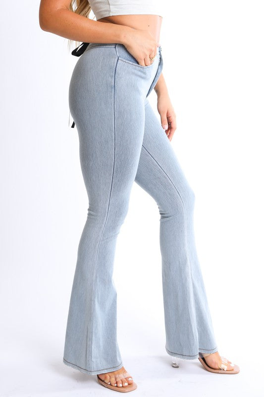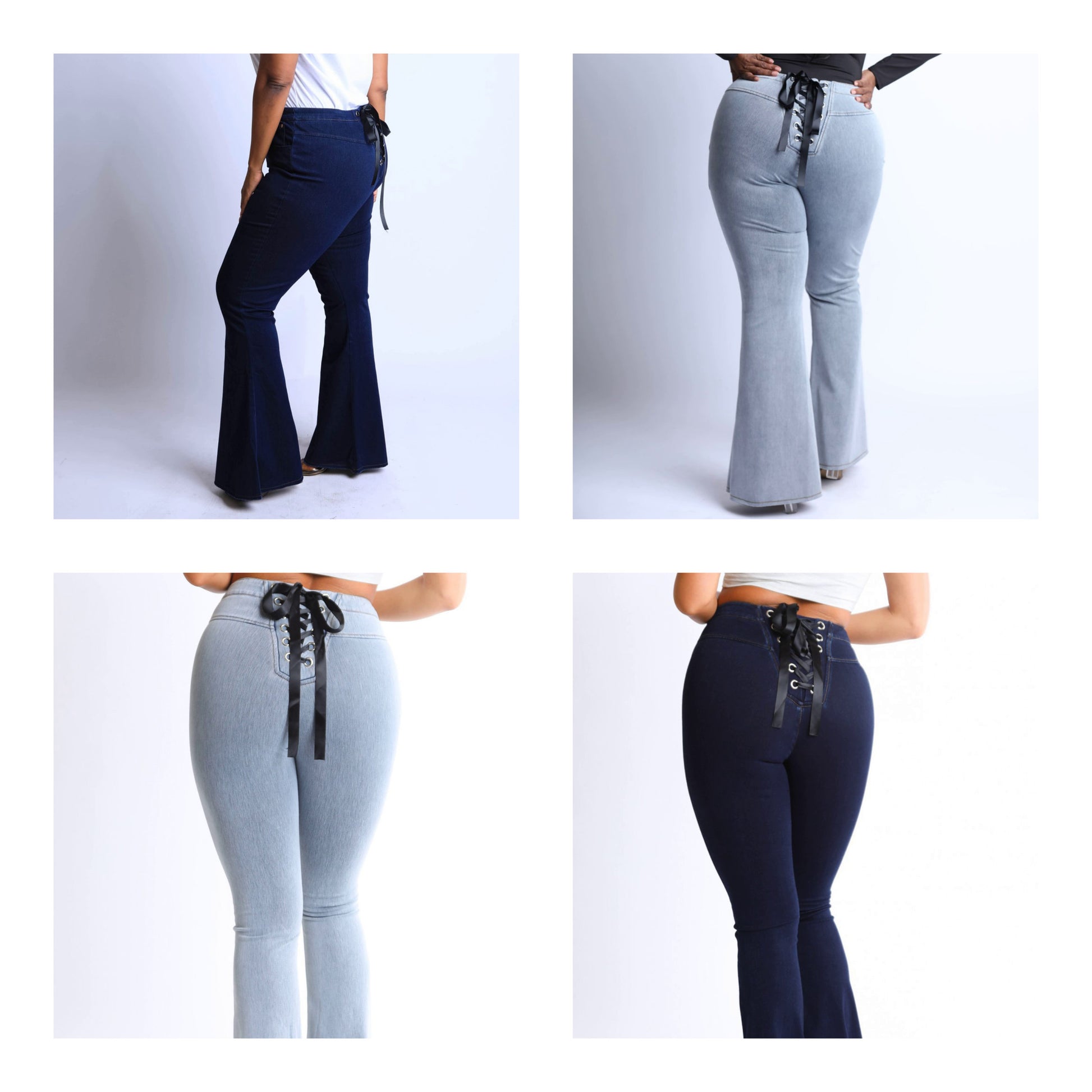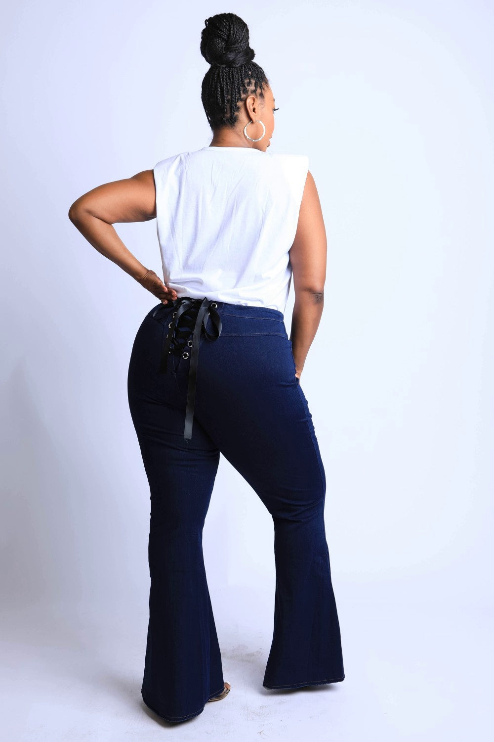 Lace up Flare Jeans jeans. Zipper and button front closure