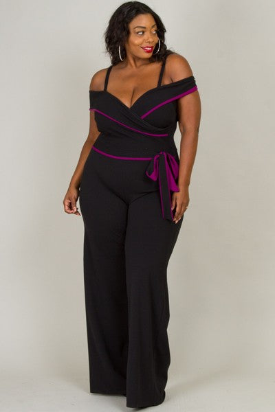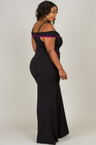 Beautiful Black jumpsuit with Magenta trimming at bodice and waist