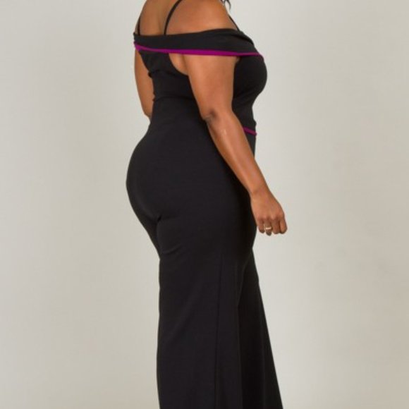 Beautiful Black jumpsuit with Mustard color trimming at bodice and waist