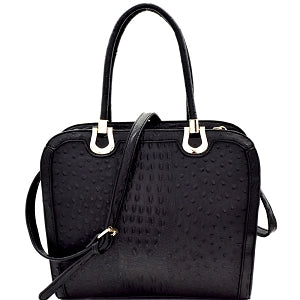Ostrich Embossed Satchel in Black