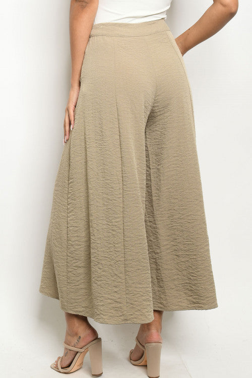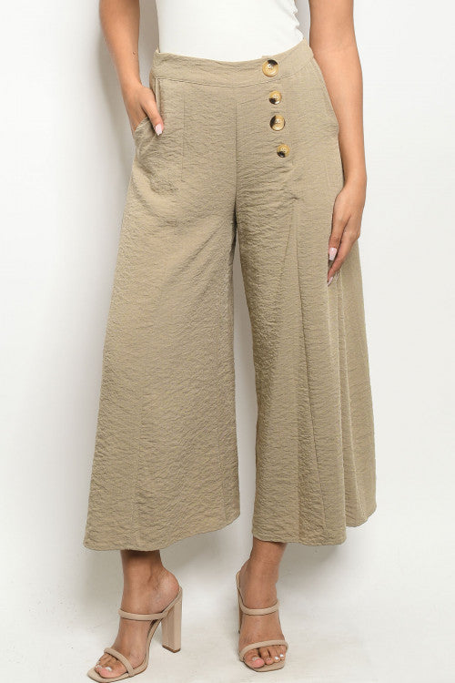 Stylish wide leg Taupe Gaucho with beautiful Button detail, side pockets, partial lining