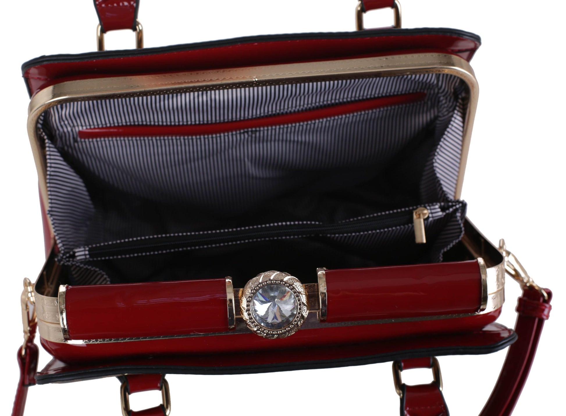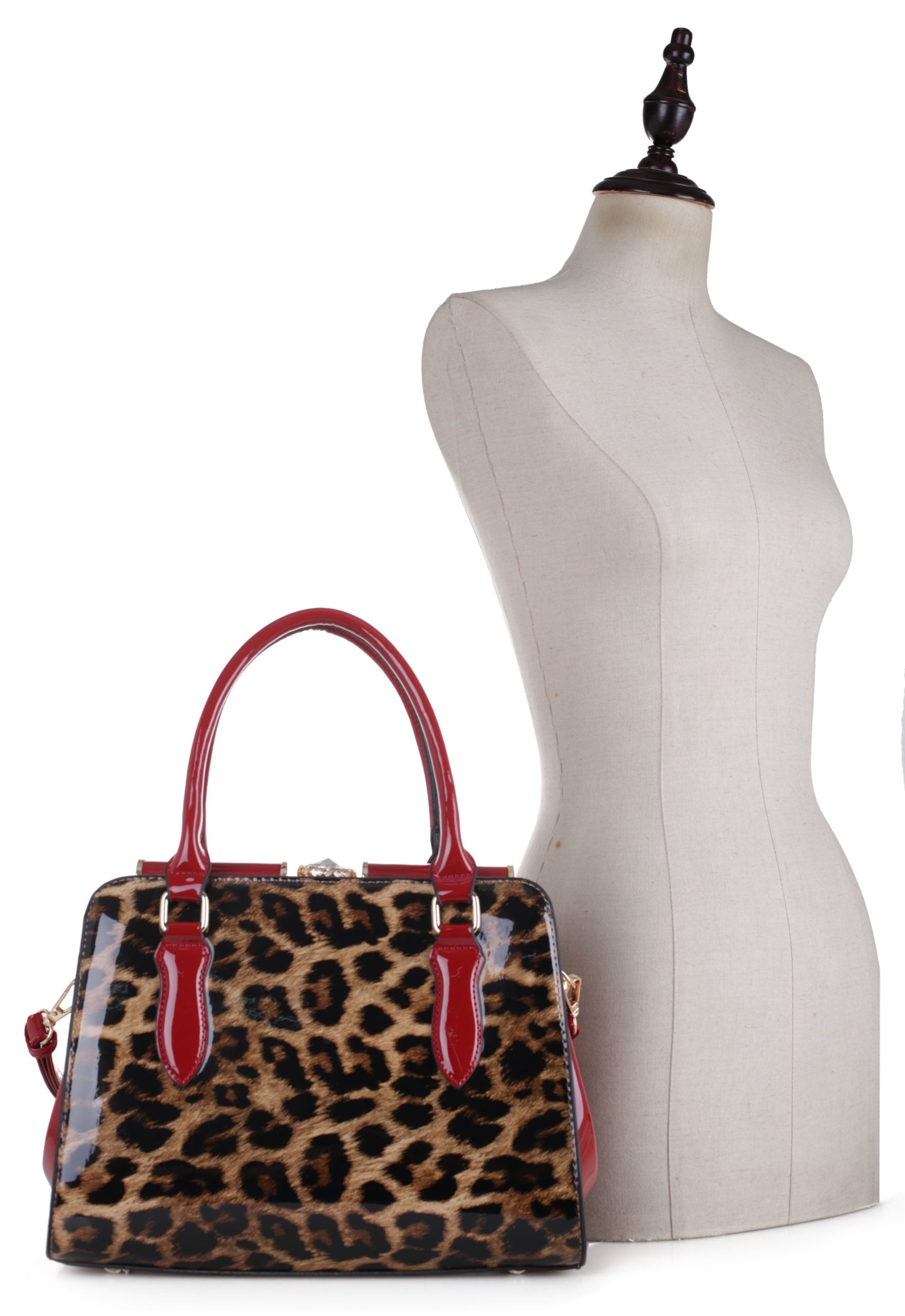 - Leopard Print Patent Jewel-Top Frame 2-Way handbag