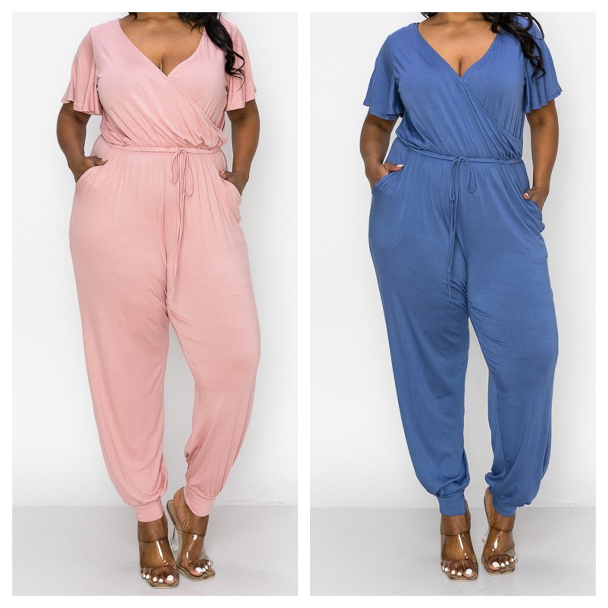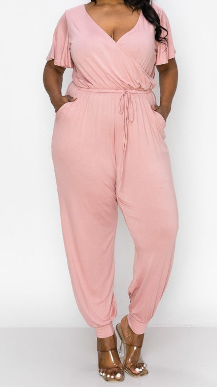 Bell Sleeve Jumpsuit with drawstring waist, pockets and banded ankle