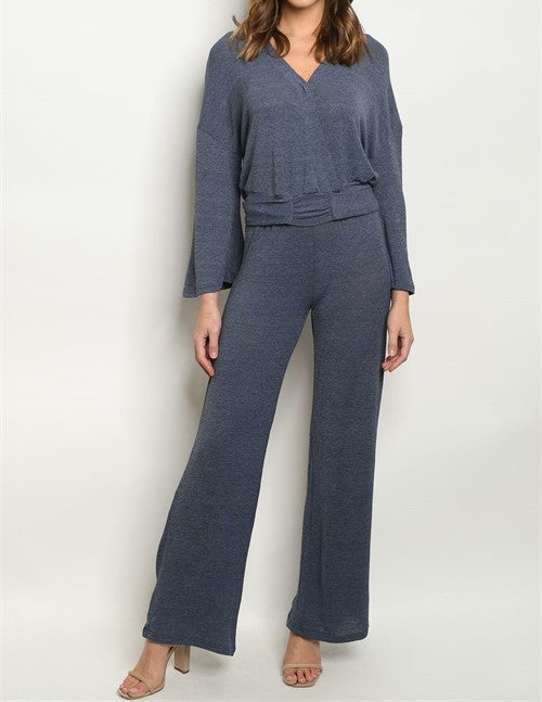 Two piece pant set. Pant has elastic waist , top has tie accent