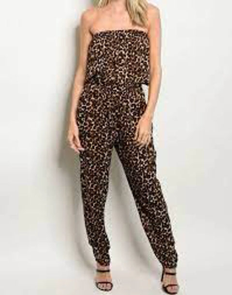 Gorgeous Leopard print tube top style jumpsuit with smock waist and side pockets