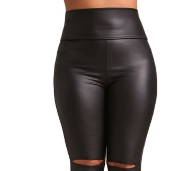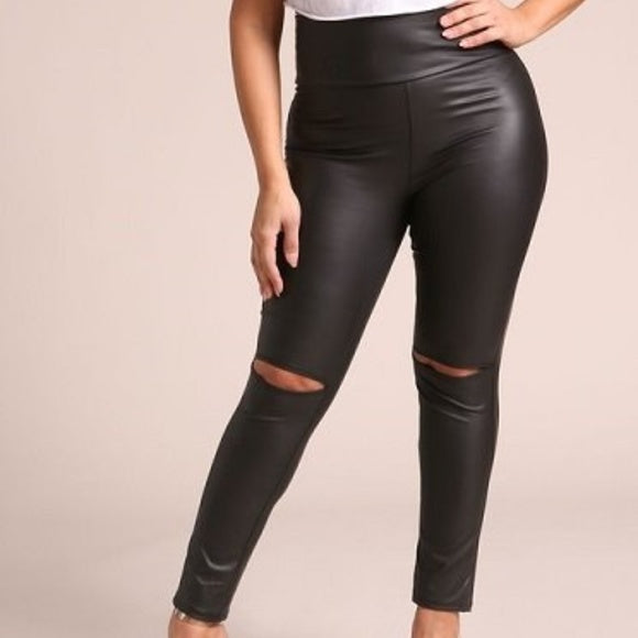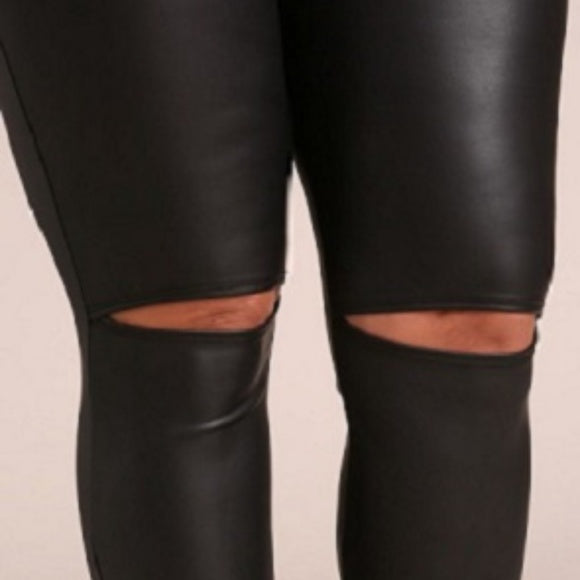 Monica Faux Leather Leggings has slits at the knees, high waist, stretchy and form fitting.