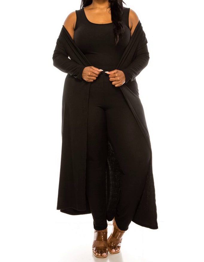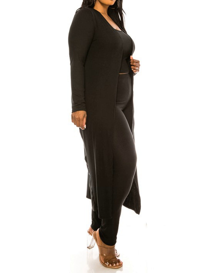 Comfy 3 Piece Outfit Ribbed knit Tank Top, Open Front Cardigan and Full Length Leggings