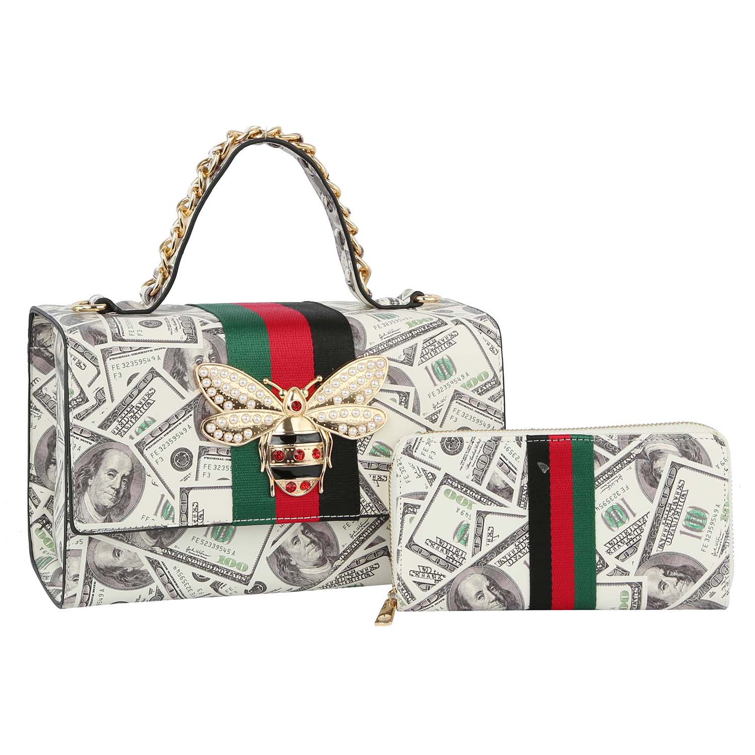 Queen Bee Strip Lucky C-Note Handbag with wallet