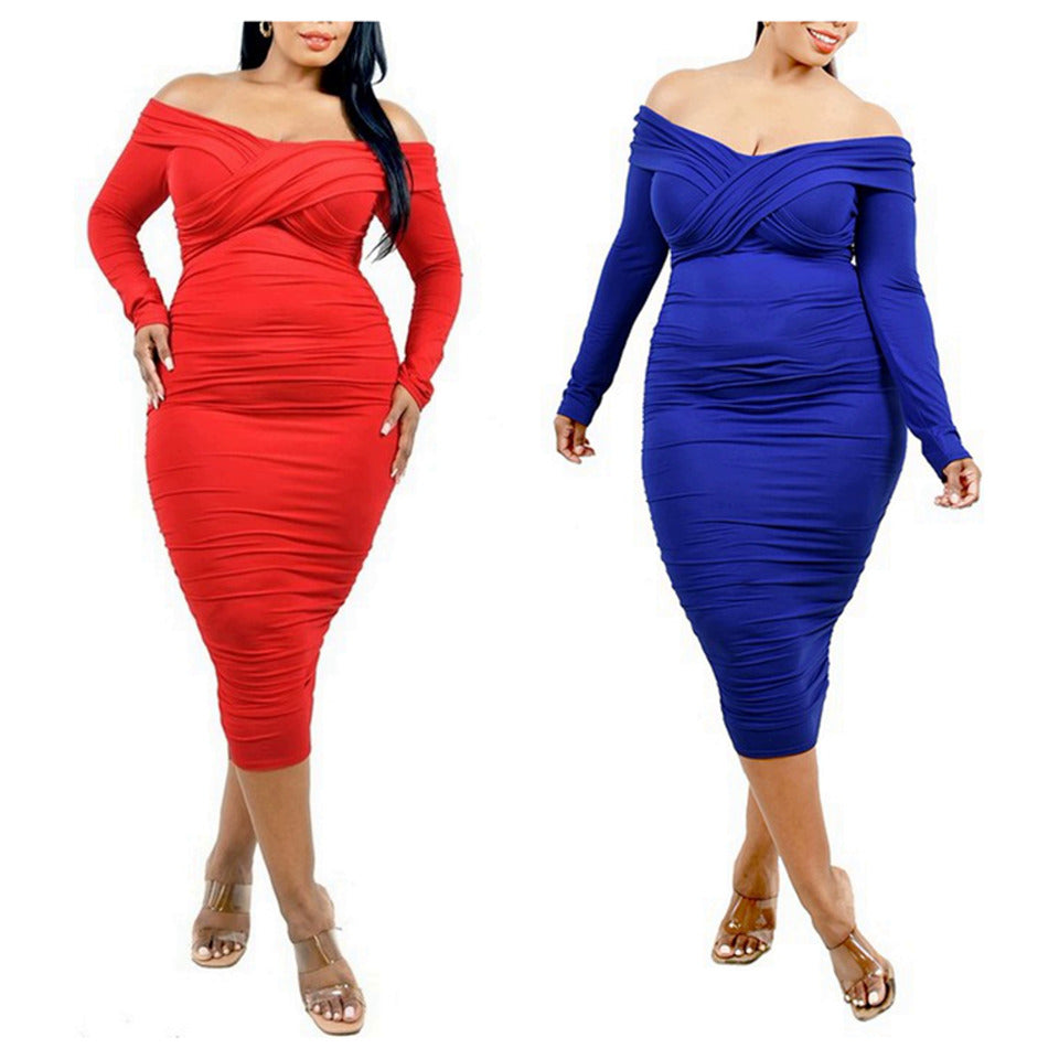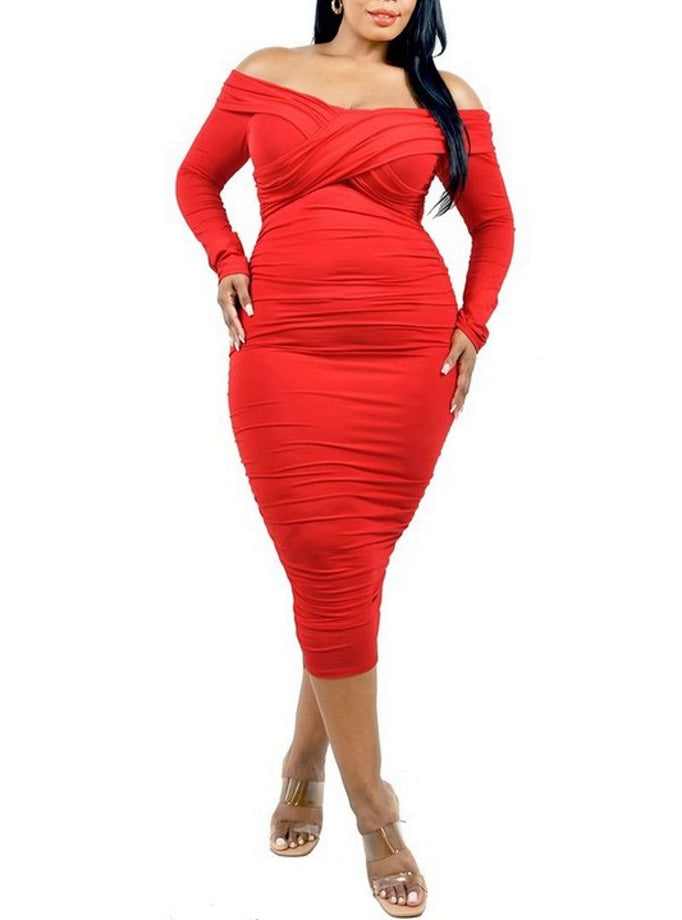 Classy and beautiful. Cross over wrapped off the shoulder with long sleeves, shirring front and back.