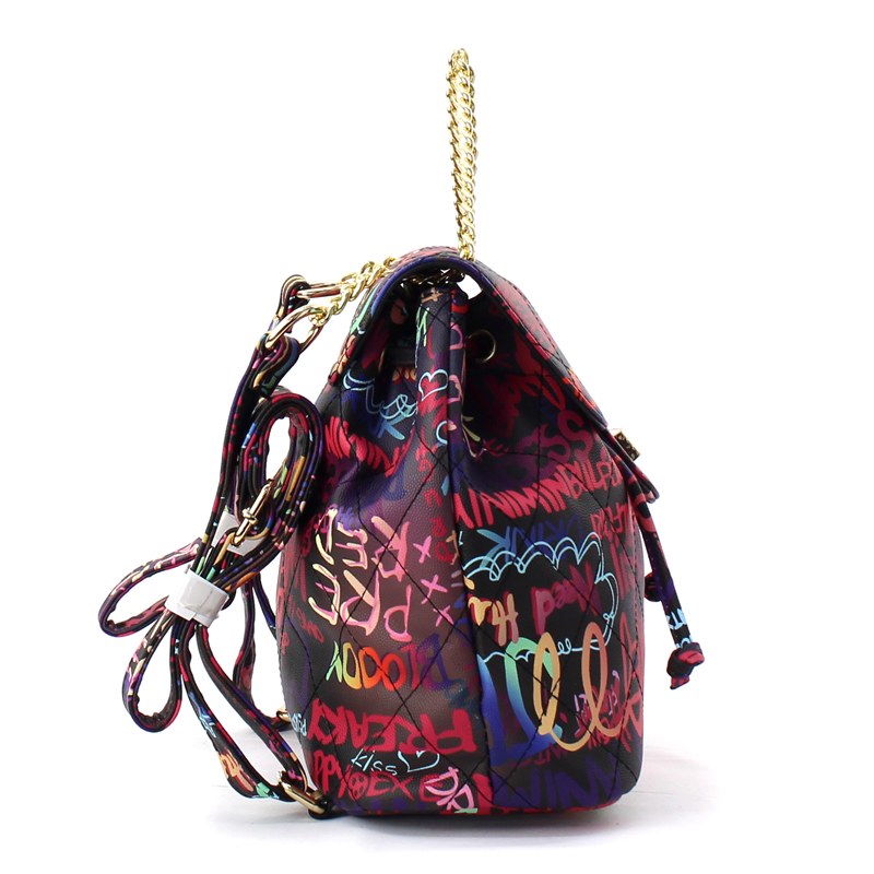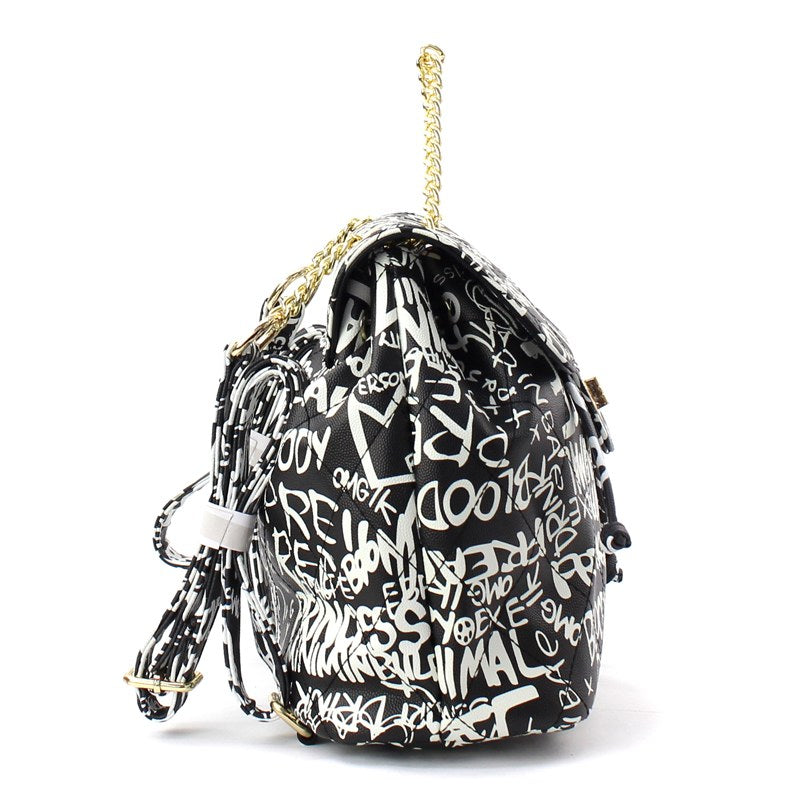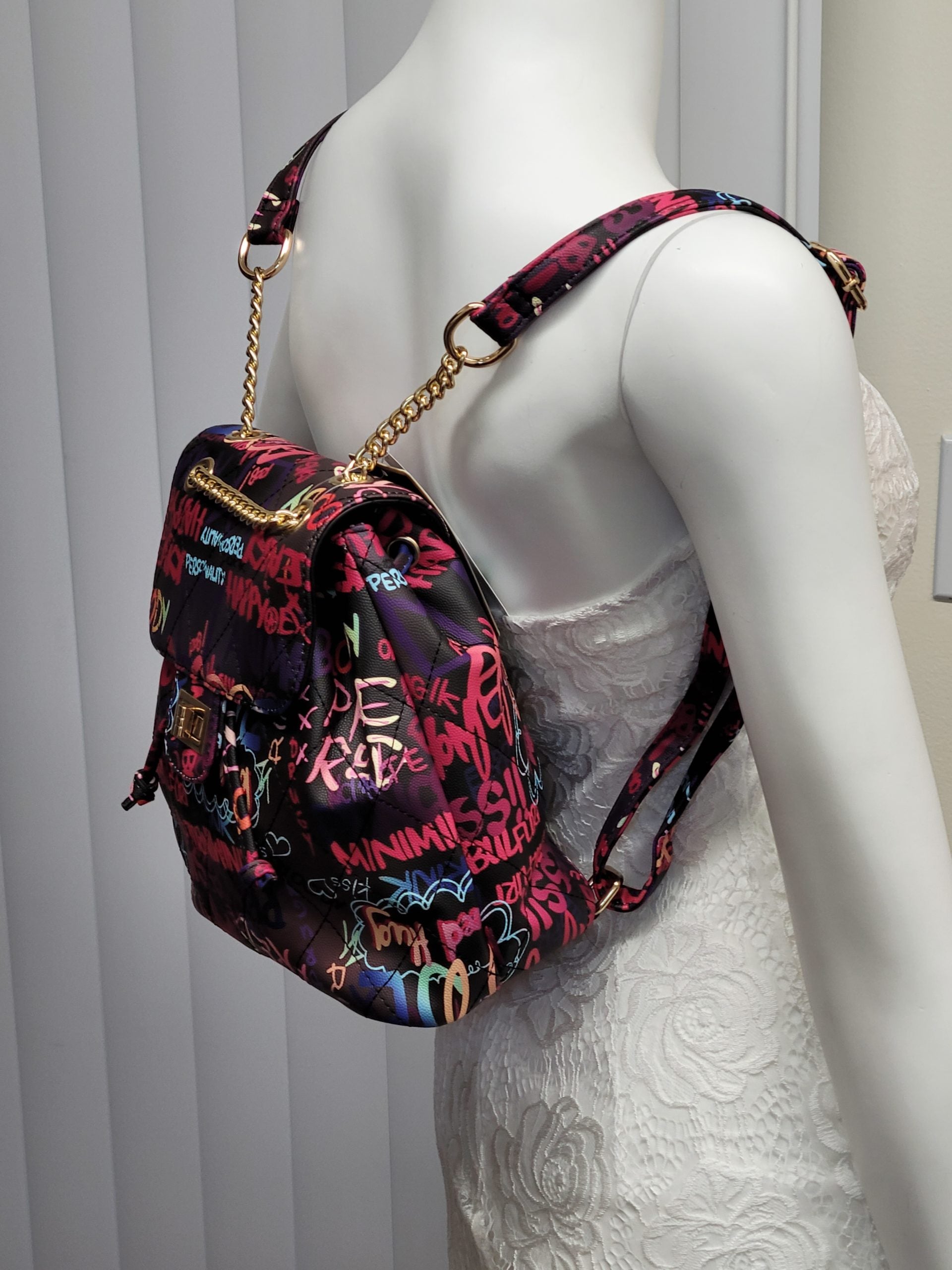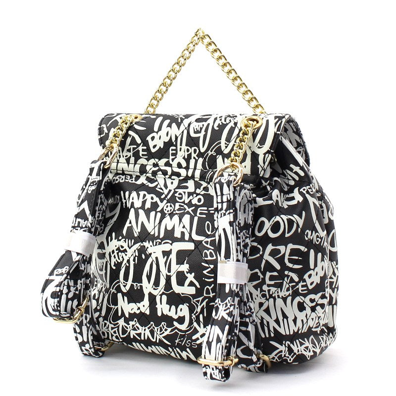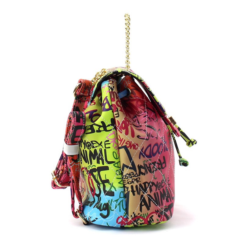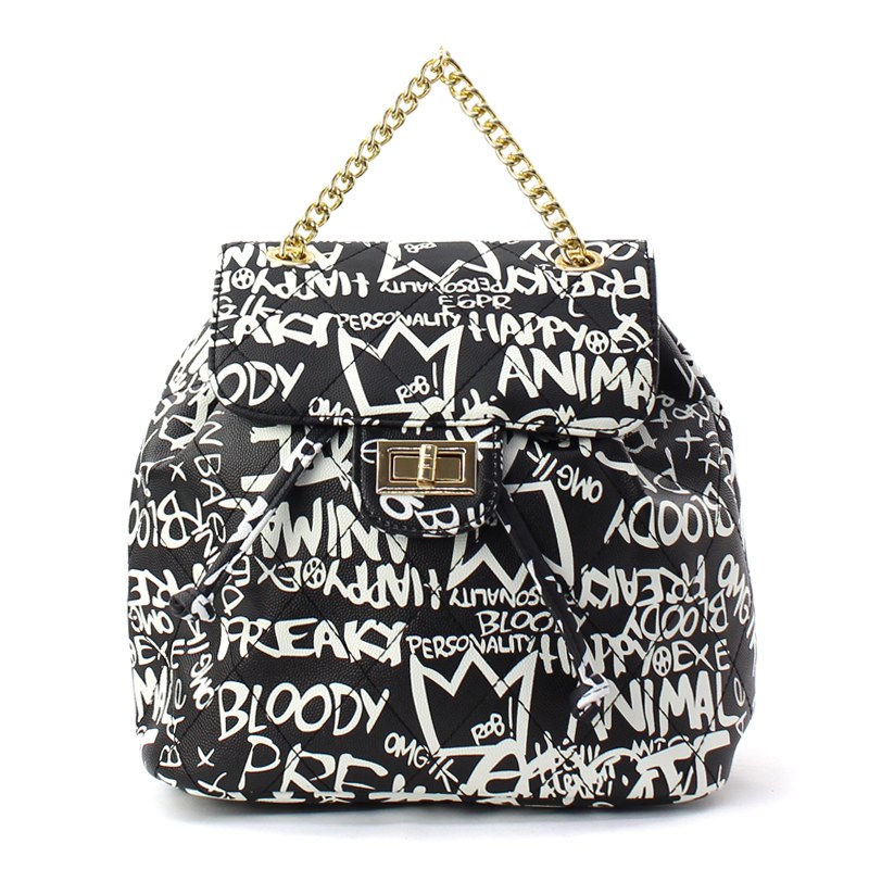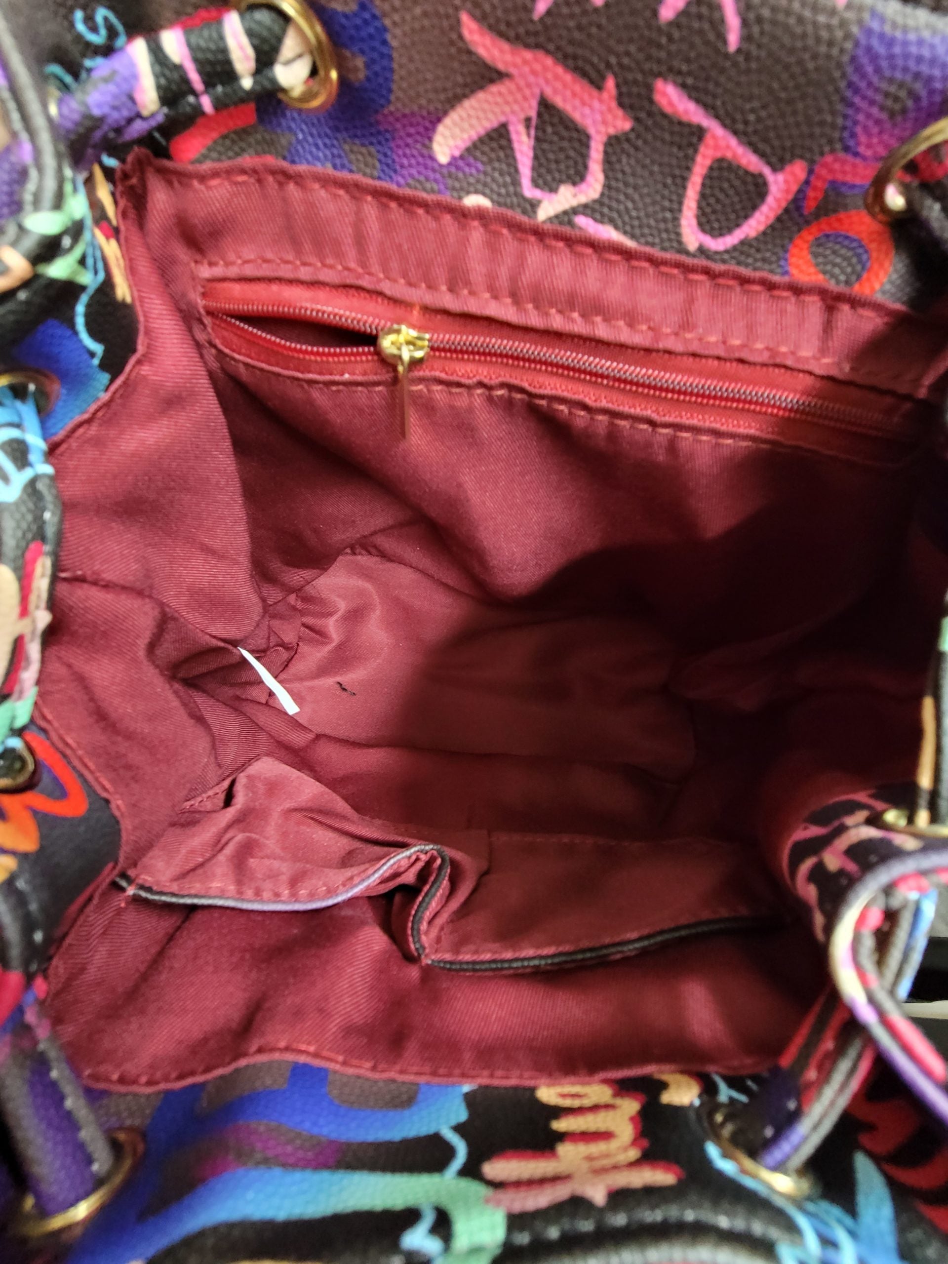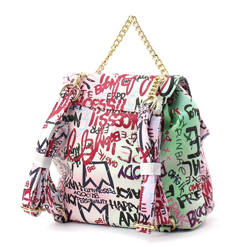 Trendy Graffiti Backpack featuring twist lock and draw string closure