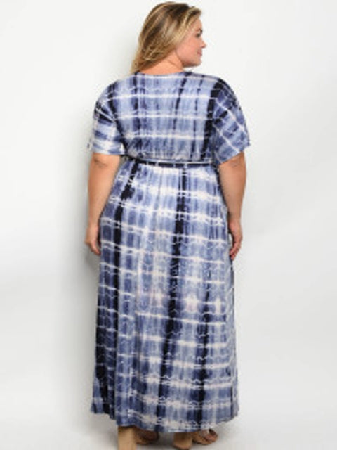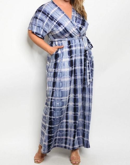 Classy, Beautiful and Comfortable. Blue and white Maxi dress with side pockets, faux wrap bodice and self tie sash