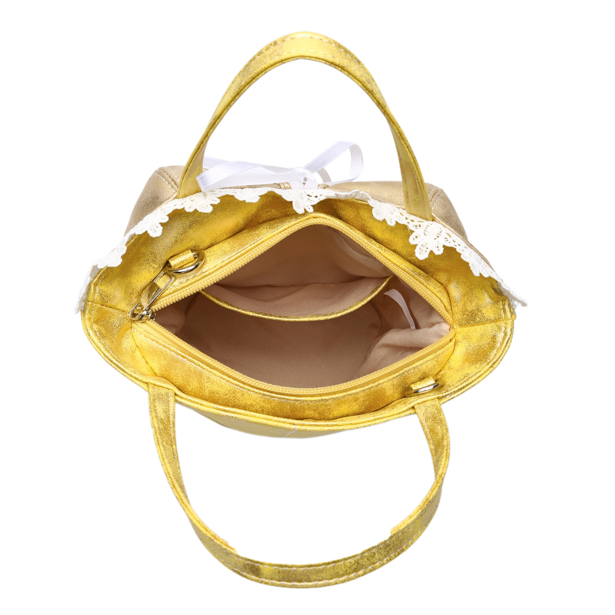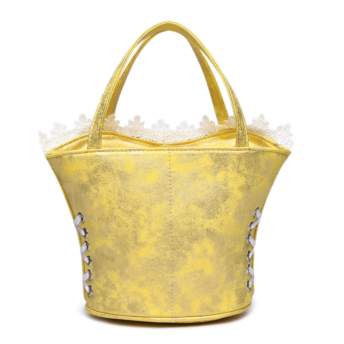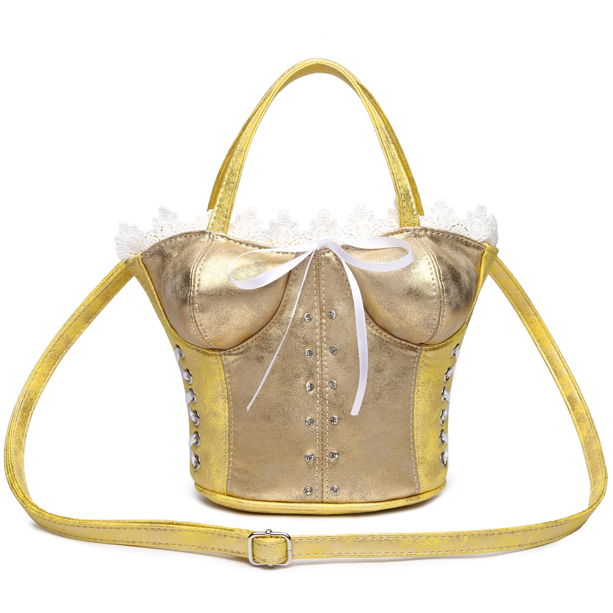 Simply gorgeous Corset Shaped handbag in Yellow and Gold with white laces on each side and lace trim inside has two pocket