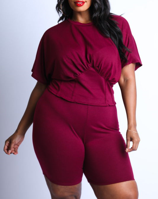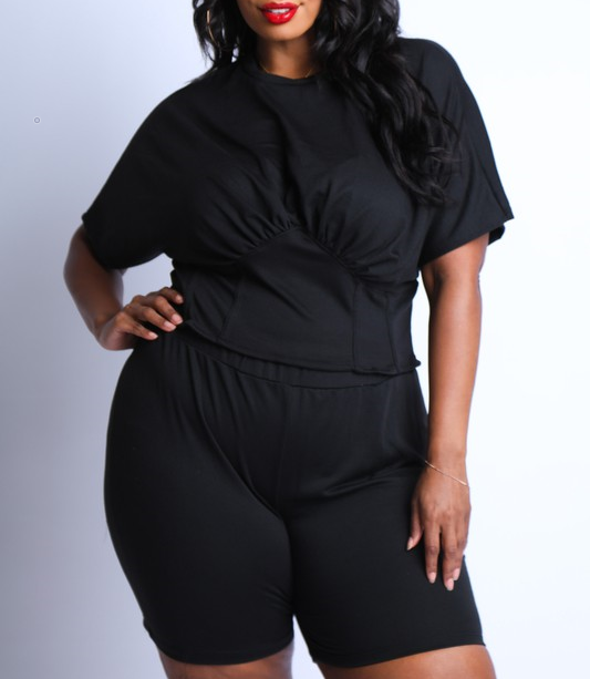 Cute Corseted Top and Biker Set , soft jersey knit fabric top and short