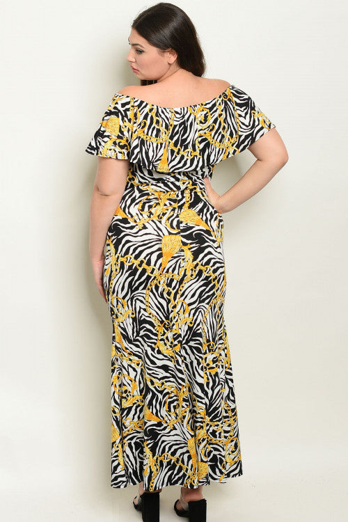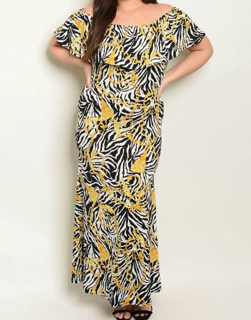 Sexy Zebra print Maxi dress with flounce bodice can be worn on or off the shoulder